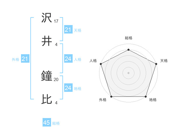 沢井 鐘比さんの外格は21画の5点!