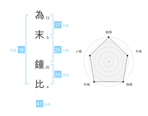 為末 鐘比さんの総格は41画の5点!