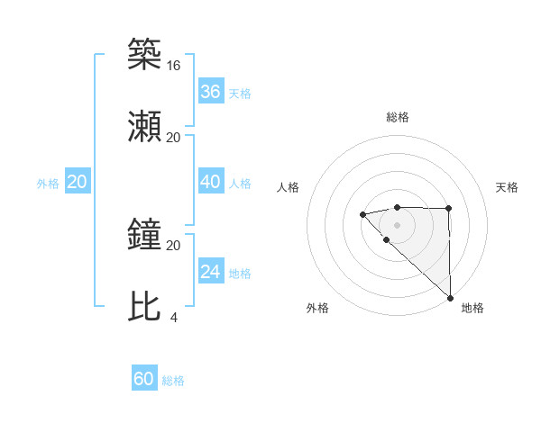 築瀬 鐘比さんの総格は60画の1点!