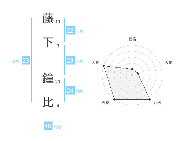 藤下 鐘比さんの外格は23画の5点!