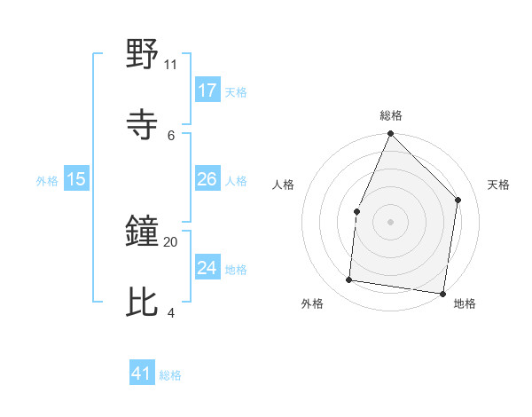 野寺 鐘比さんを姓名の画数から五運を鑑定