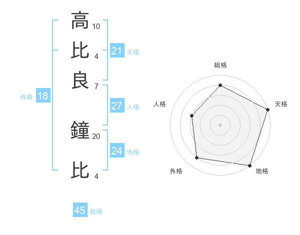 高比良 鐘比さんを姓名の画数から五運を鑑定