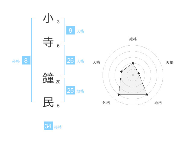 小寺 鐘民さんの総格は34画の2点!