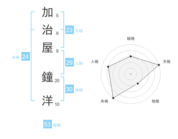 加治屋 鐘洋さんを姓名の画数から五運を鑑定