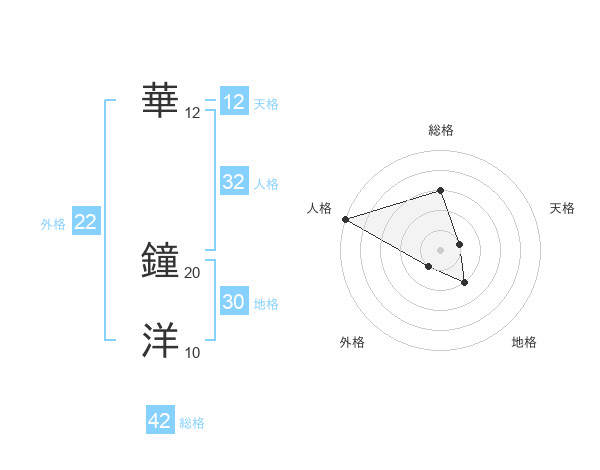 華 鐘洋さんの外格は22画の1点!