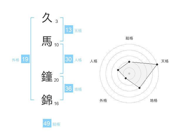 久馬 鐘錦さんを姓名の画数から五運を鑑定