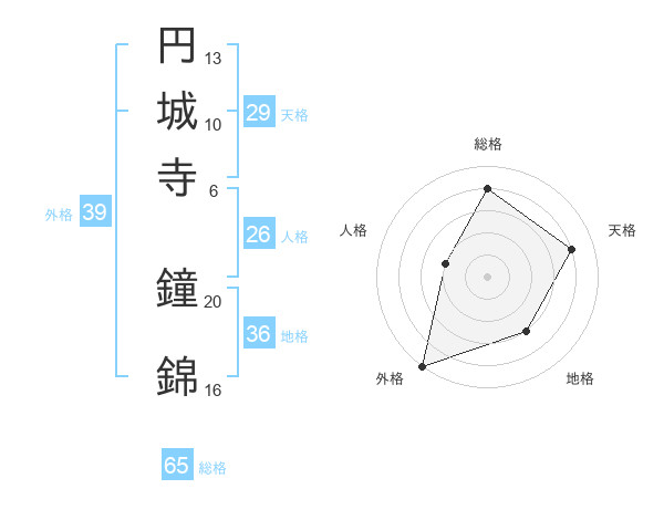 円城寺 鐘錦さんの総格は65画の4点!