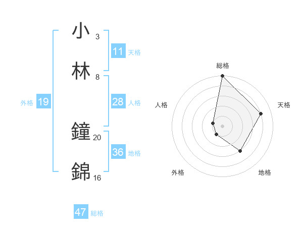 小林 鐘錦さんを姓名の画数から五運を鑑定