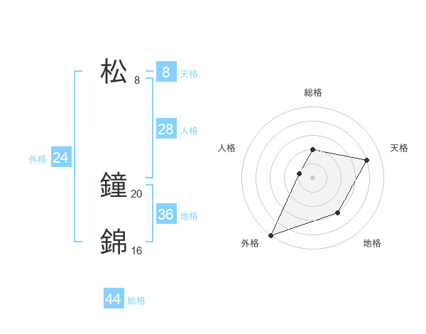 松 鐘錦さんの総格は44画の2点!