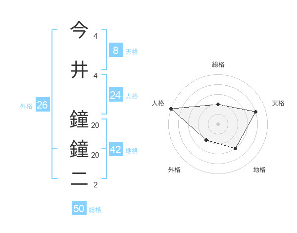 今井 鐘鐘二さんを姓名の画数から五運を鑑定