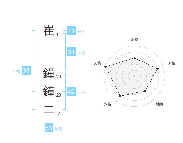崔 鐘鐘二さんの外格は33画の4点!
