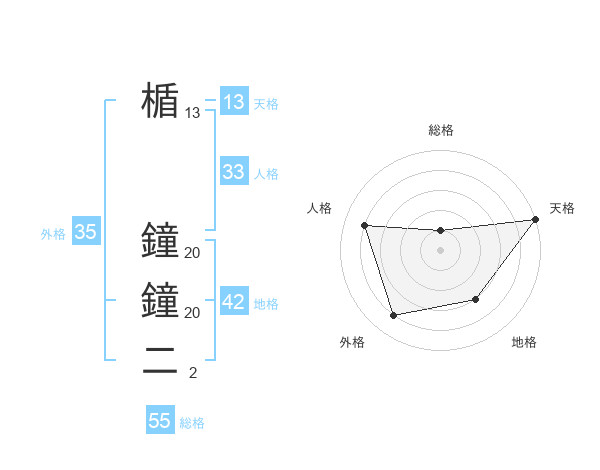 楯 鐘鐘二さんの名前の鑑定結果は!