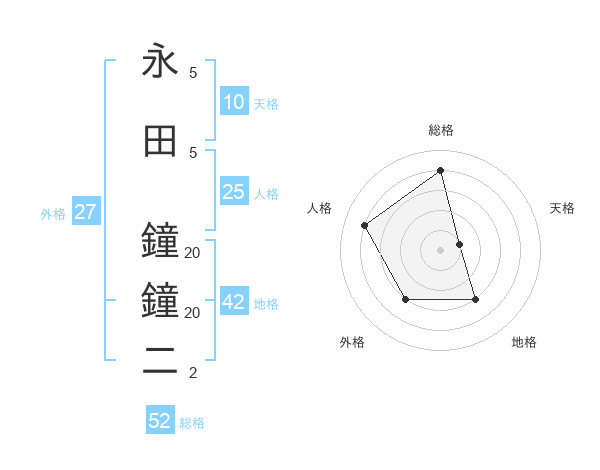 永田 鐘鐘二さんの総格は52画の4点!