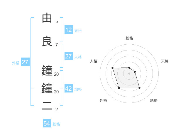 由良 鐘鐘二さんを姓名の画数から五運を鑑定