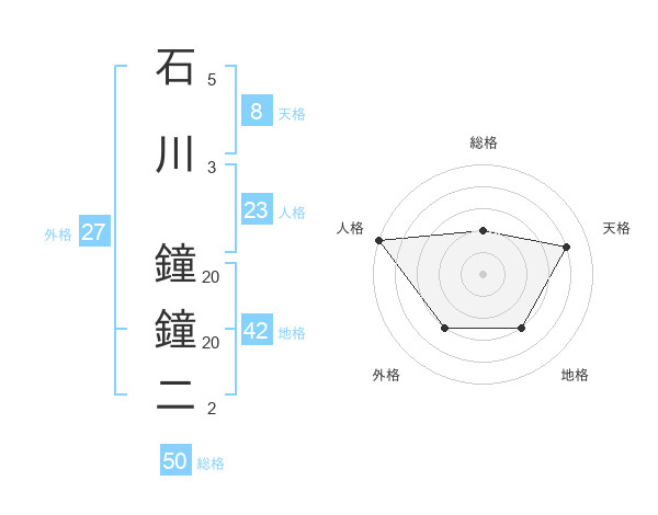 石川 鐘鐘二さんを姓名の画数から五運を鑑定