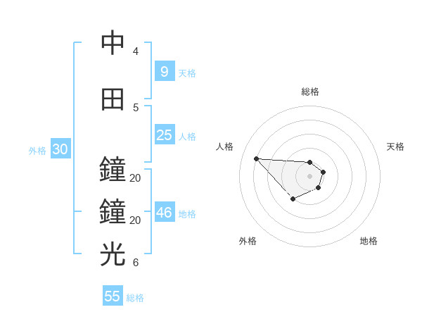 中田 鐘鐘光さんを姓名の画数から五運を鑑定