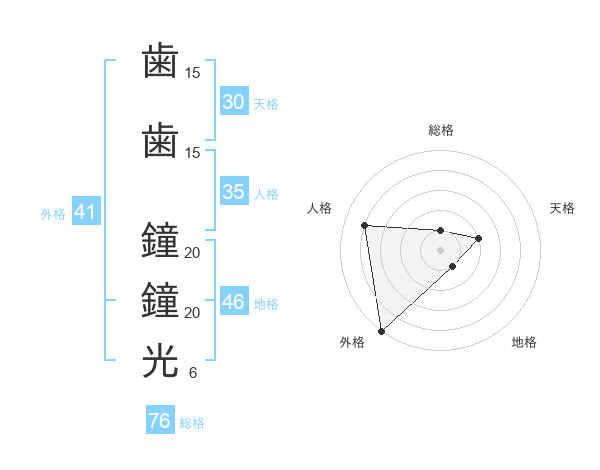 歯歯 鐘鐘光さんの総格は76画の1点!