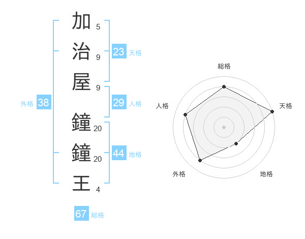 加治屋 鐘鐘王さんの外格は38画の4点!
