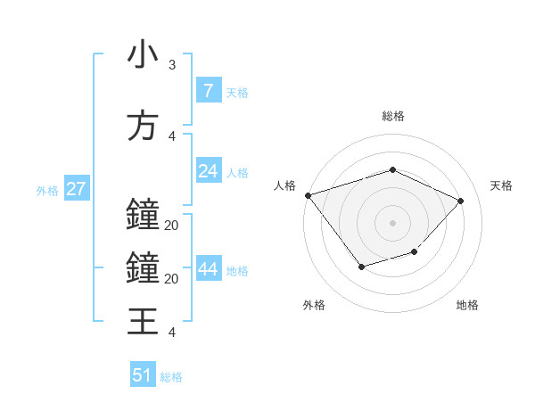 小方 鐘鐘王さんを姓名の画数から五運を鑑定