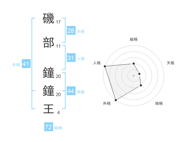 磯部 鐘鐘王さんを姓名の画数から五運を鑑定