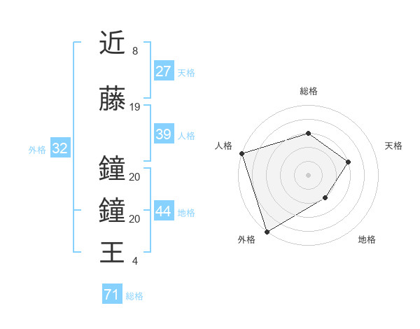 近藤 鐘鐘王さんを姓名の画数から五運を鑑定