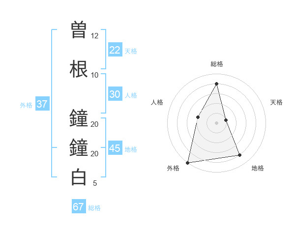 曽根 鐘鐘白さんを姓名の画数から五運を鑑定