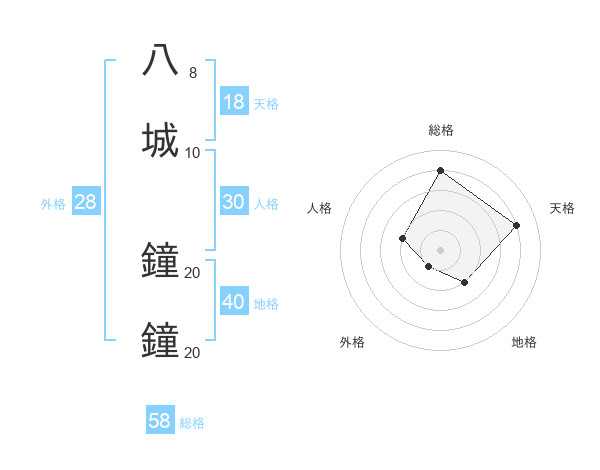 八城 鐘鐘さんを姓名の画数から五運を鑑定
