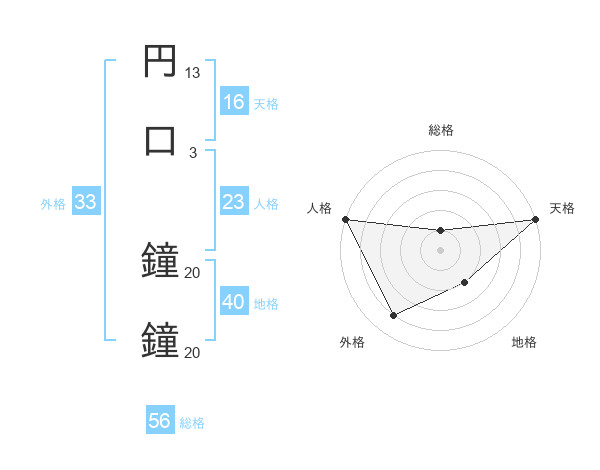 円口 鐘鐘さんを姓名の画数から五運を鑑定