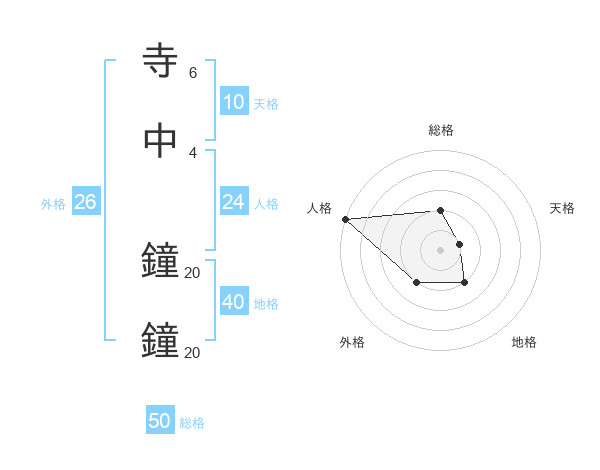 寺中 鐘鐘さんの総格は50画の2点!
