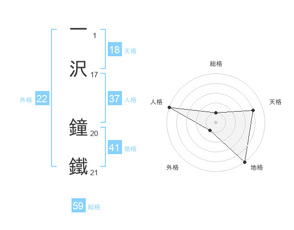 一沢 鐘鐵さんの総格は59画の1点!