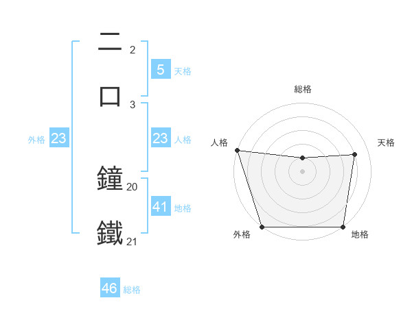 二口 鐘鐵さんを姓名の画数から五運を鑑定
