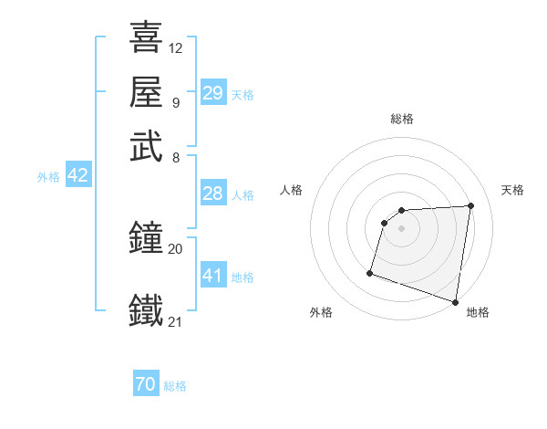 喜屋武 鐘鐵さんの外格は42画の3点!