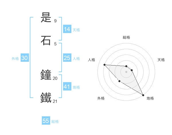 是石 鐘鐵さんを姓名の画数から五運を鑑定