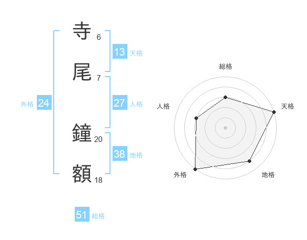 寺尾 鐘額さんの総格は51画の3点!