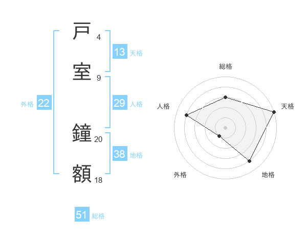 戸室 鐘額さんの総格は51画の3点!