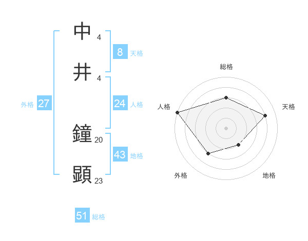 中井 鐘顕さんの総格は51画の3点!