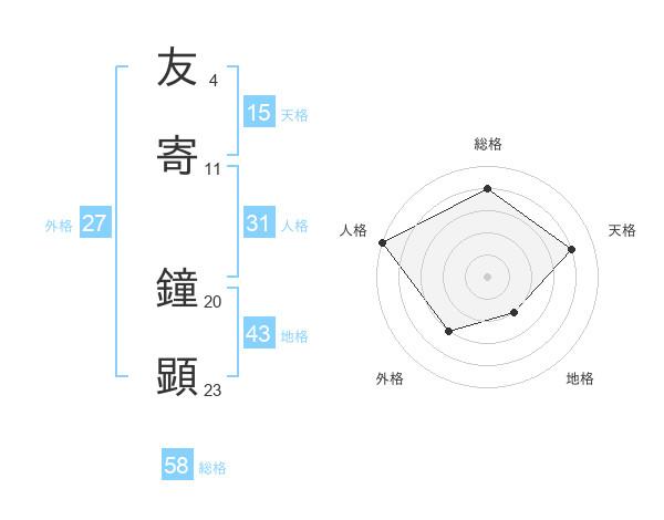 友寄 鐘顕さんを姓名の画数から五運を鑑定