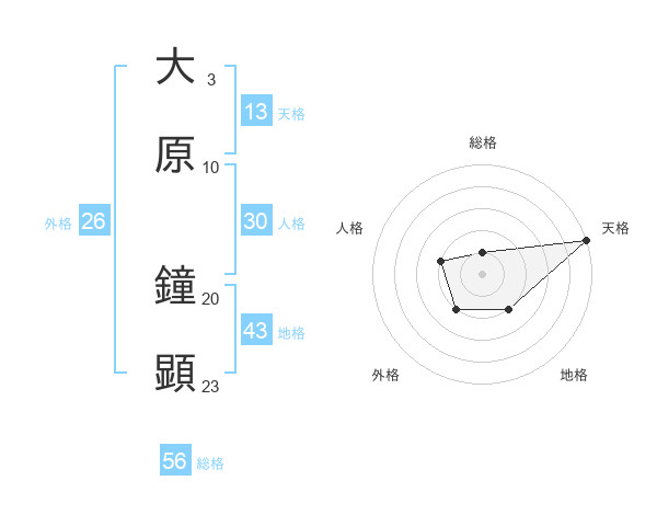 大原 鐘顕さんを姓名の画数から五運を鑑定