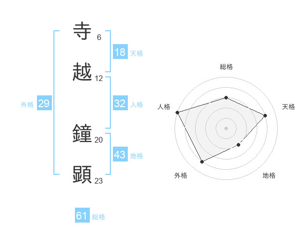 寺越 鐘顕さんを姓名の画数から五運を鑑定
