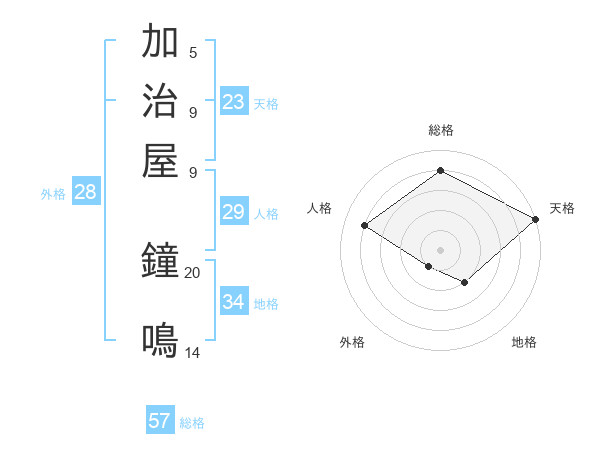 加治屋 鐘鳴さんの総格は57画の4点