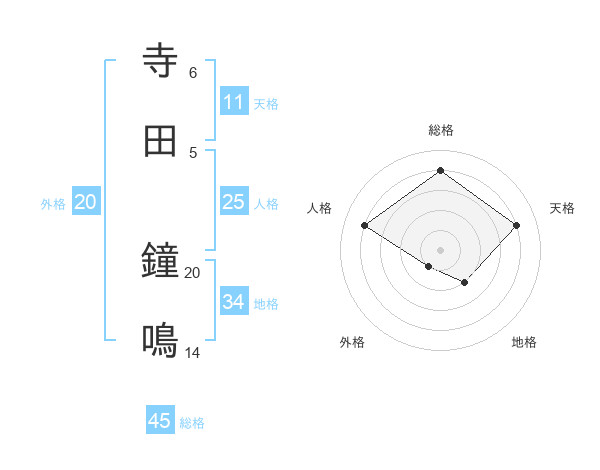 寺田 鐘鳴さんを姓名の画数から五運を鑑定