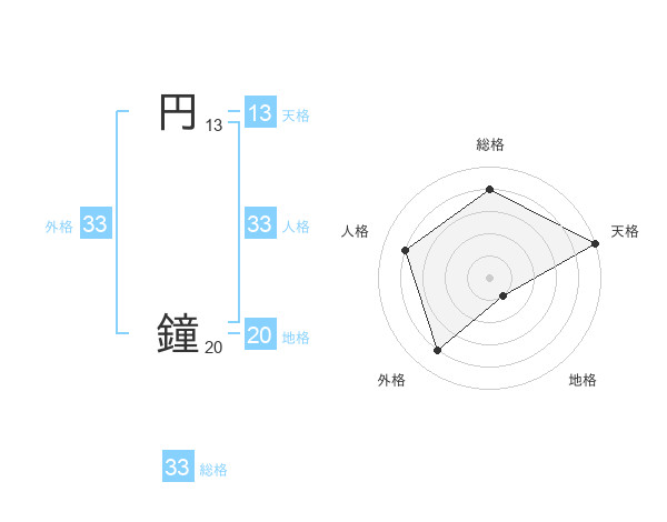 円 鐘さんの外格は33画の4点!