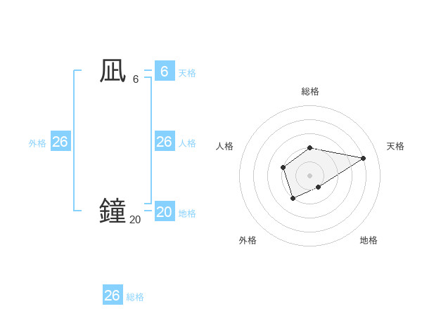 凪 鐘さんの総格は26画の2点!