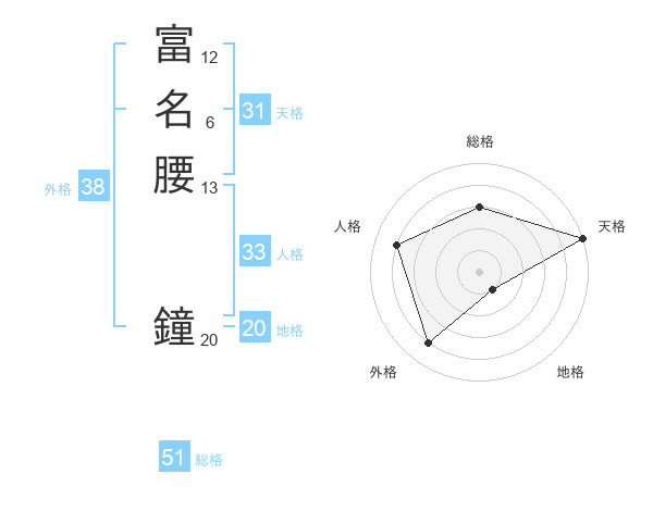 富名腰 鐘さんを姓名の画数から五運を鑑定