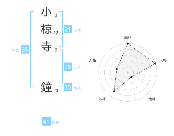 小椋寺 鐘さんを姓名の画数から五運を鑑定