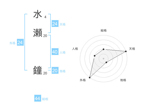 水瀬 鐘さんの総格は44画の2点!