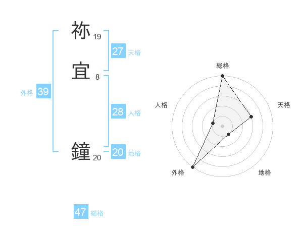 祢宜 鐘さんの総格は47画の5点!