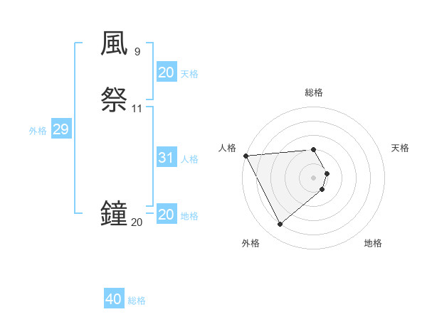 風祭 鐘さんを姓名の画数から五運を鑑定