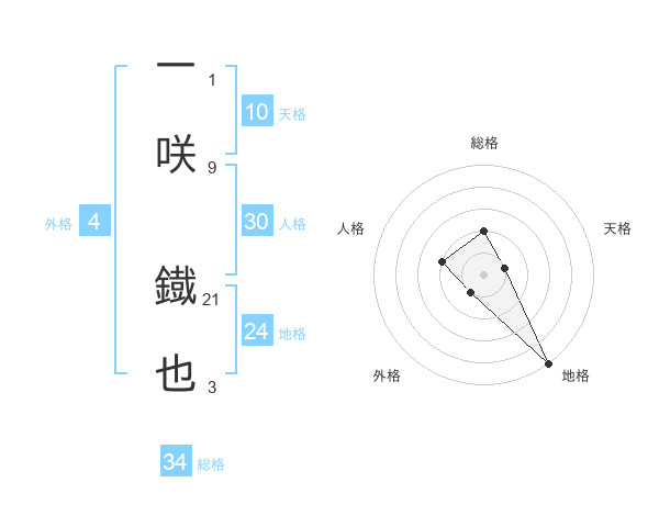 一咲 鐡也さんを姓名の画数から五運を鑑定