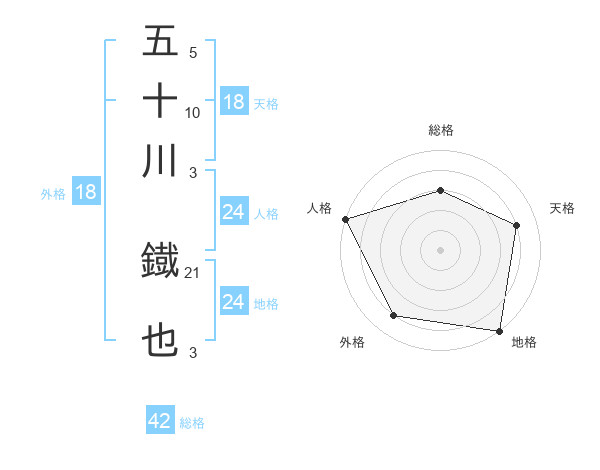 五十川 鐡也さんを姓名の画数から五運を鑑定